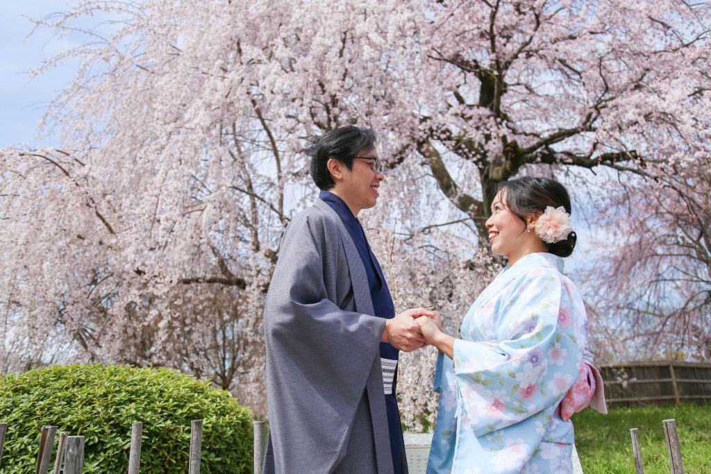 Taking photos under the cherry blossoms while dressed in traditional clothing is the perfect way to celebrate graduation and create lasting memories.