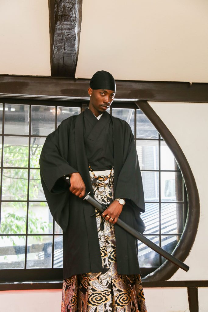 arming streets, historic shrines, and traditional cafes in a stylish men’s hakama?