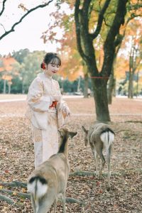 奈良公園がすぐ目の前なので着物に着替えたらすぐに鹿に会えます