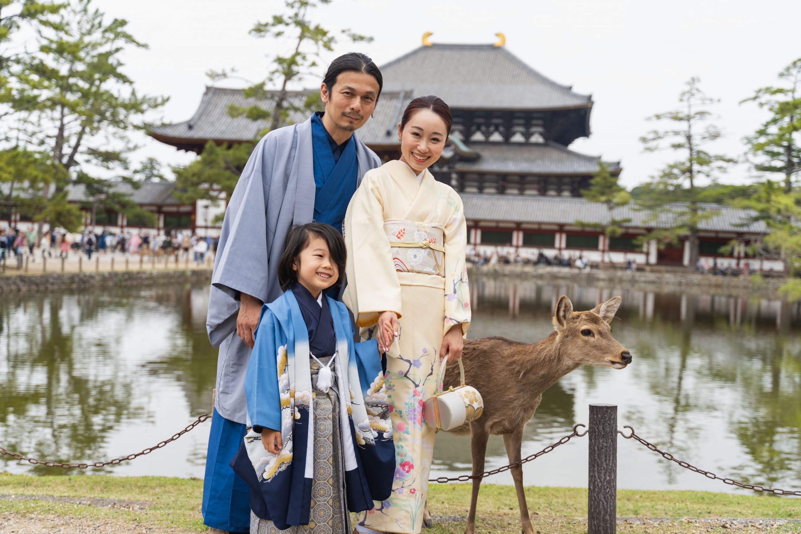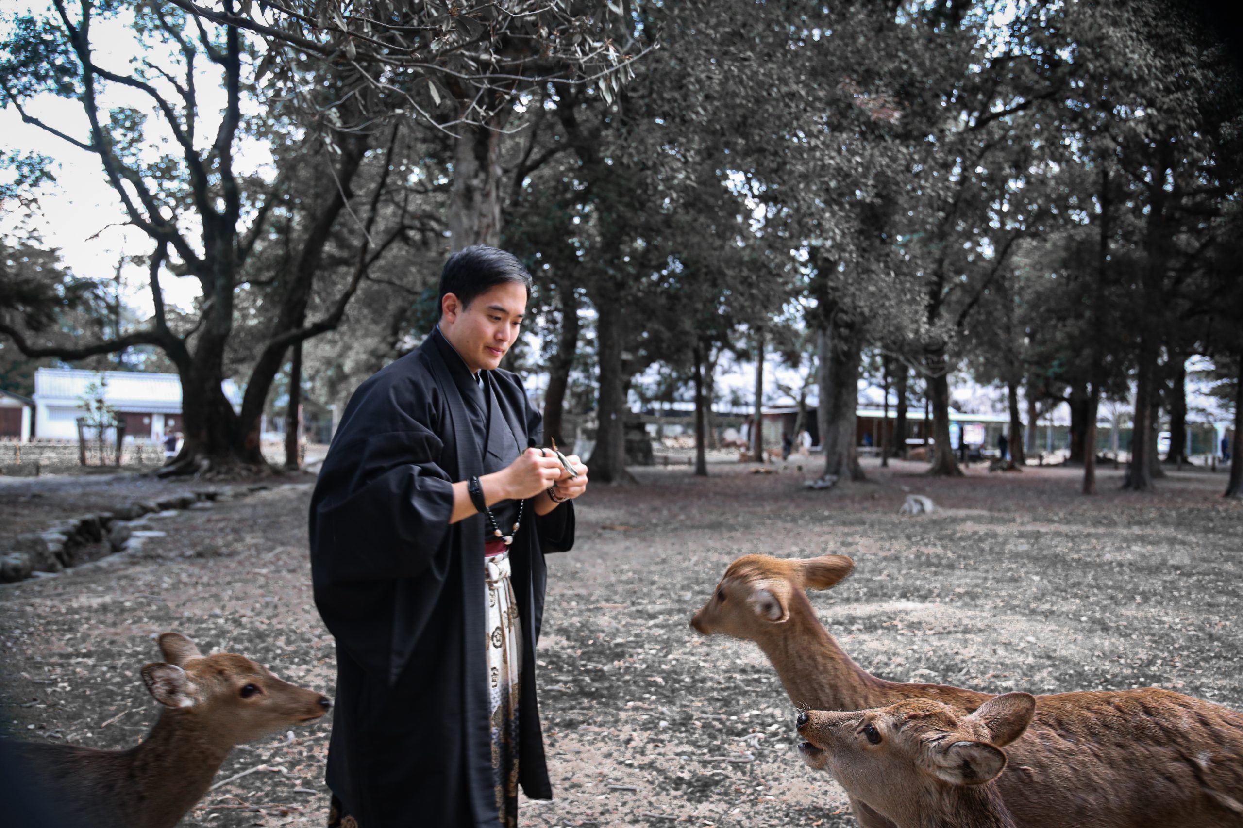 男らしさを纏う本格和装で、特別な一日を。落ち着いた色柄から華やかなデザインまで幅広くご用意。奈良の街並みに映える姿で散策や撮影を楽しめる、男性に人気の着物レンタルプランです。